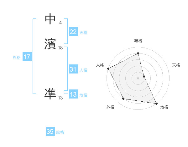 中濱 凖さんの天格は22画の1点!