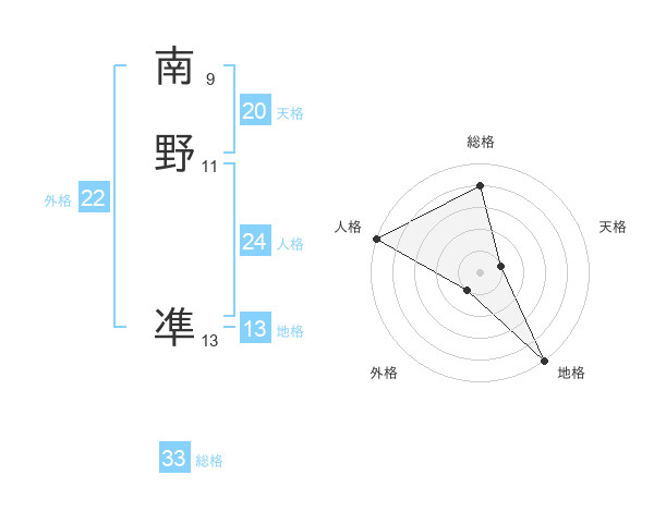 南野 凖さんの総格は33画の4点!
