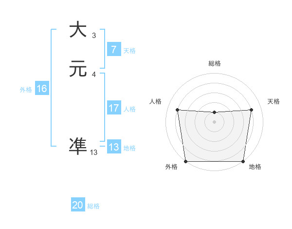 大元 凖さんを姓名の画数から五運を鑑定