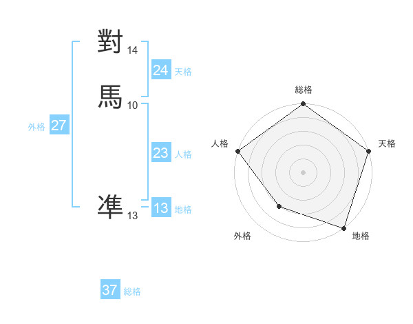 對馬 凖さんの総格は37画の5点!