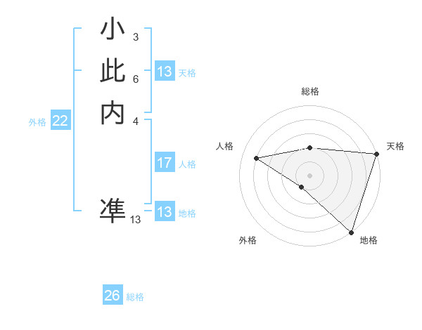 小此内 凖さんの天格は13画の5点!