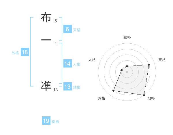布一 凖さんの地格は13画の5点!