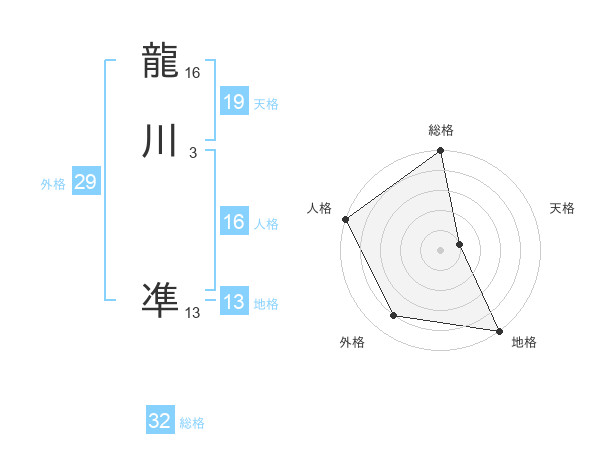 龍川 凖さんの総格は32画の5点!