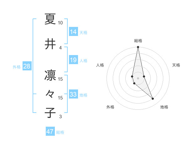 夏井 凛々子さんの総格は47画の5点!