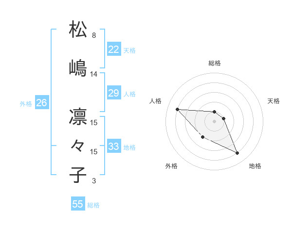 松嶋 凛々子さんの総格は55画の1点!