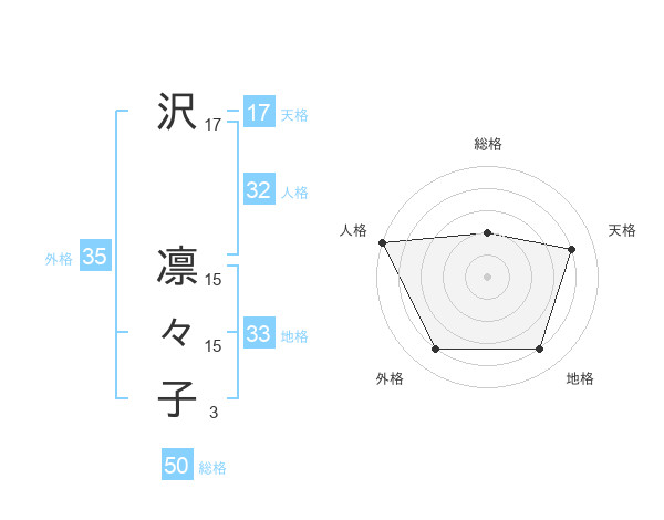 沢 凛々子さんを姓名の画数から五運を鑑定