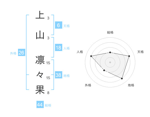 上山 凛々果さんの総格は44画の2点!