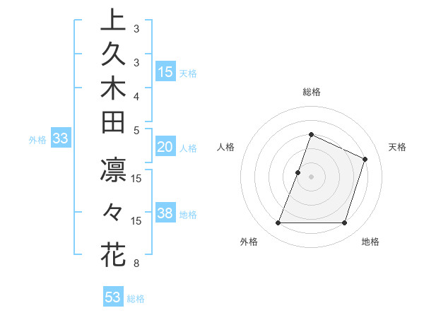 上久木田 凛々花さんを姓名の画数から五運を鑑定