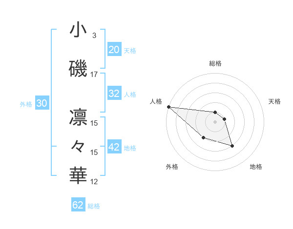 小磯 凛々華さんの総格は62画の1点!