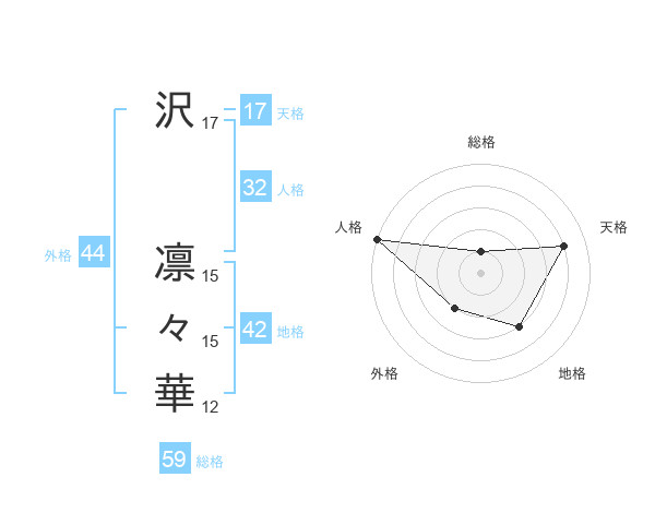 沢 凛々華さんの総格は59画の1点