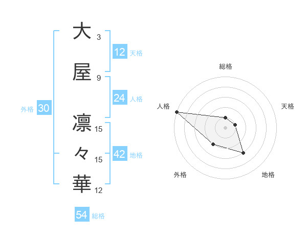大屋 凛々華さんを姓名の画数から五運を鑑定