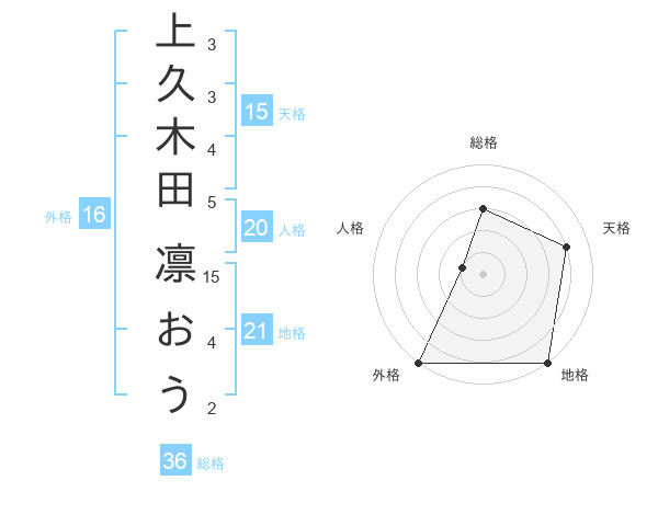 上久木田 凛おうさんを姓名の画数から五運を鑑定