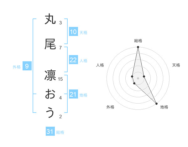 丸尾 凛おうさんを姓名の画数から五運を鑑定