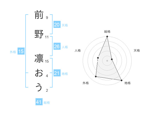 前野 凛おうさんを姓名の画数から五運を鑑定