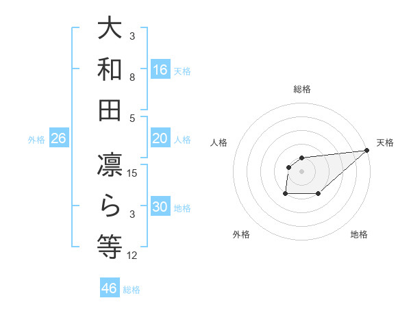 大和田 凛ら等さんを姓名の画数から五運を鑑定