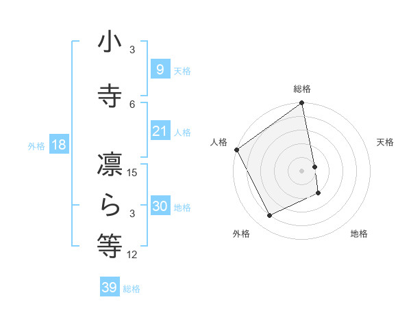 小寺 凛ら等さんの総格は39画の5点!