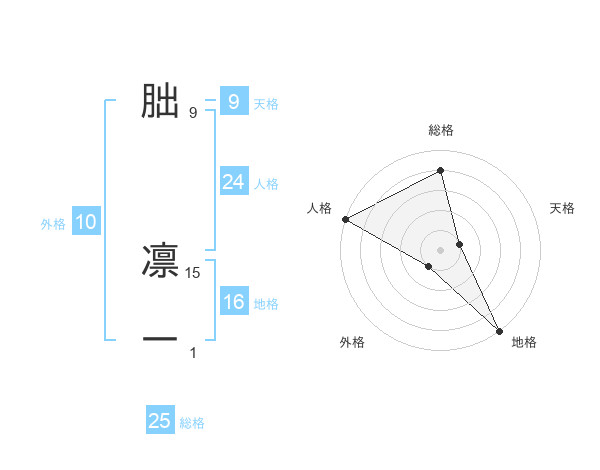 朏 凛一さんの総格は25画の4点!