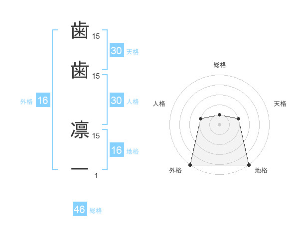 歯歯 凛一さんの総格は46画の1点!