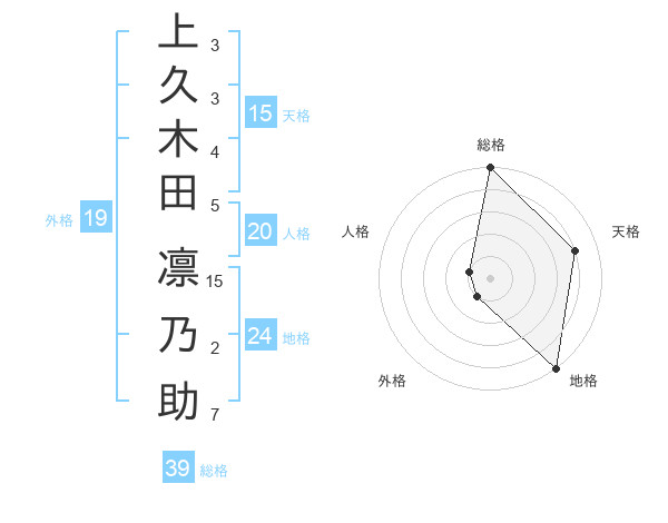 上久木田 凛乃助さんを姓名の画数から五運を鑑定