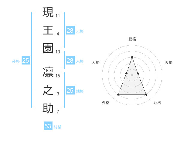 現王園 凛之助さんを姓名の画数から五運を鑑定