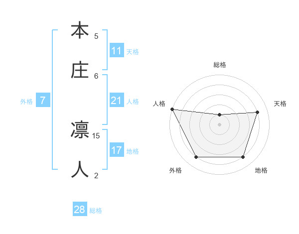 本庄 凛人さんの天格は11画の4点!