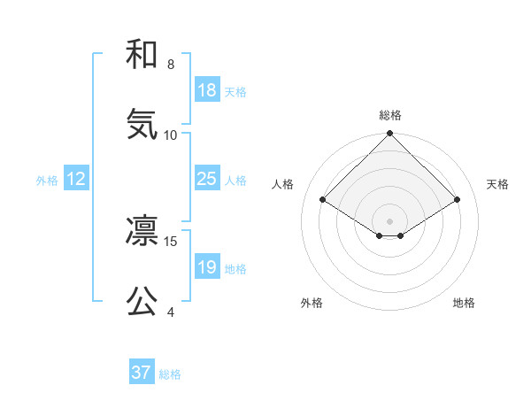 和気 凛公さんの総格は37画の5点!