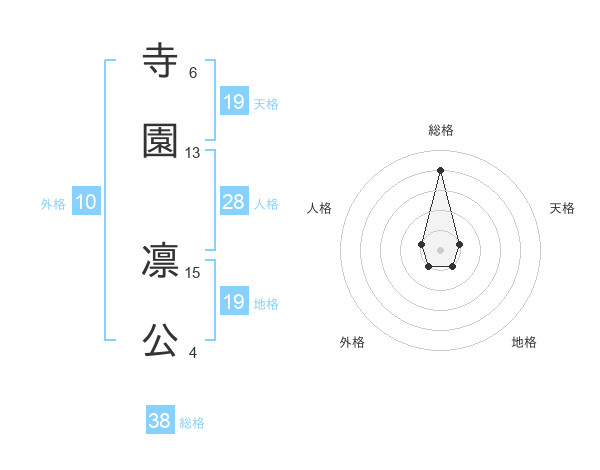 寺園 凛公さんの総格は38画の4点!