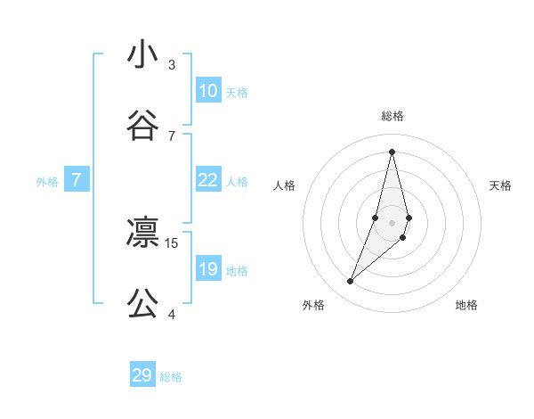小谷 凛公さんの総格は29画の4点!