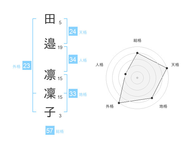 田邉 凛凜子さんの総格は57画の4点