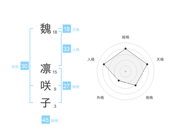 魏 凛咲子さんを姓名の画数から五運を鑑定
