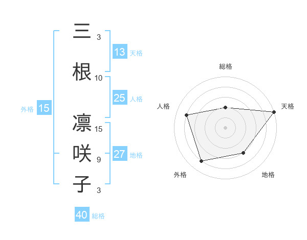 三根 凛咲子さんを姓名の画数から五運を鑑定