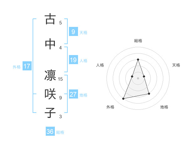 古中 凛咲子さんの地格は27画の3点!