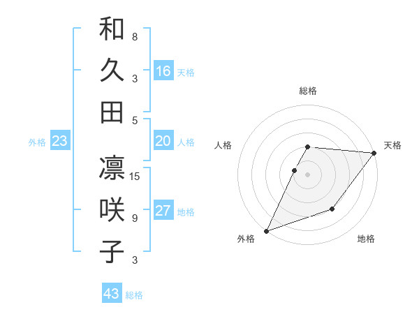 和久田 凛咲子さんを姓名の画数から五運を鑑定