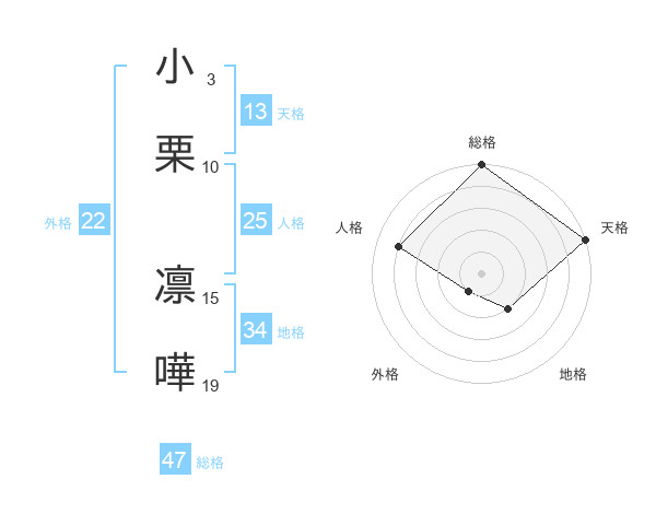 小栗 凛嘩さんの総格は47画の5点!