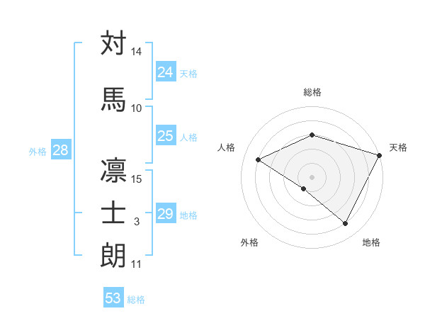 対馬 凛士朗さんを姓名の画数から五運を鑑定
