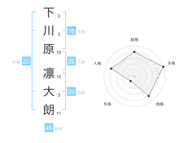下川原 凛大朗さんを姓名の画数から五運を鑑定