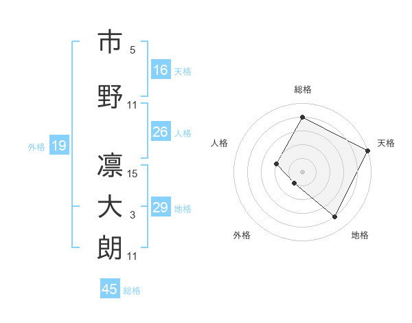 市野 凛大朗さんの総格は45画の4点!