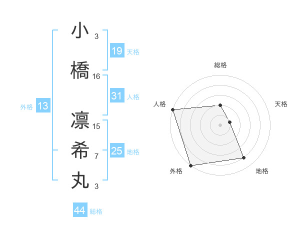 小橋 凛希丸さんの外格は13画の5点!