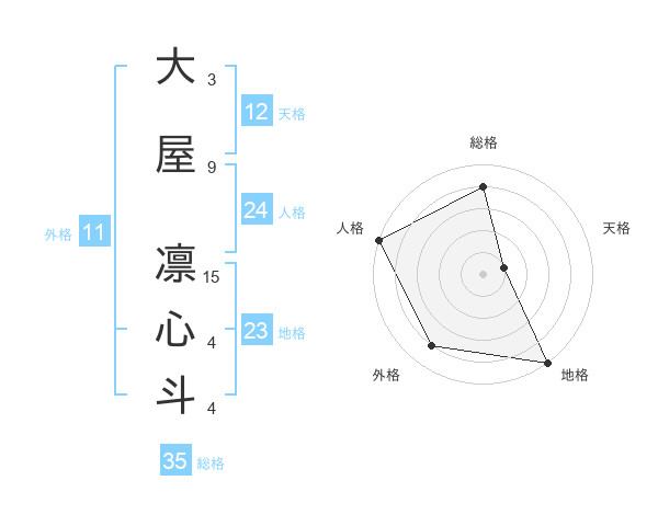 大屋 凛心斗さんの総格は35画の4点!