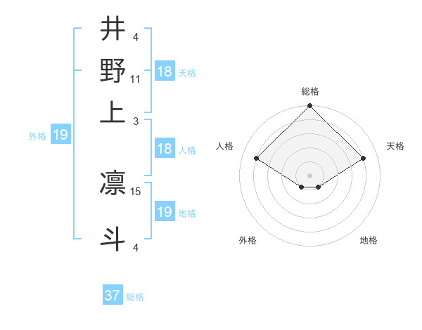 井野上 凛斗さんの総格は37画の5点!