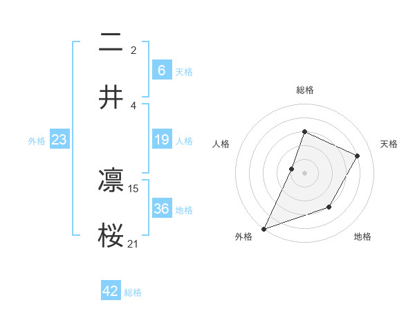 二井 凛桜さんを姓名の画数から五運を鑑定
