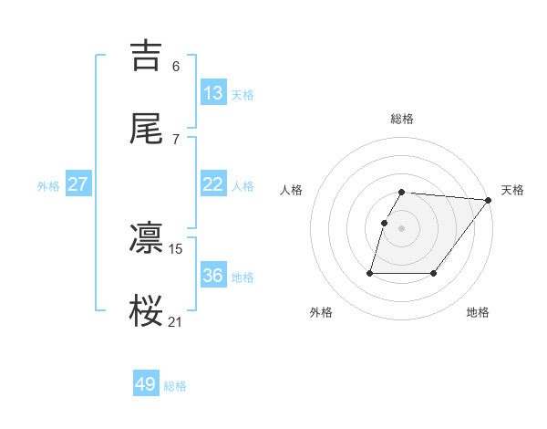 吉尾 凛桜さんの天格は13画の5点!