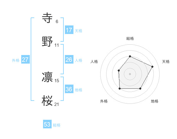 寺野 凛桜さんの総格は53画の3点!