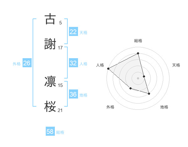 古謝 凛桜さんを姓名の画数から五運を鑑定