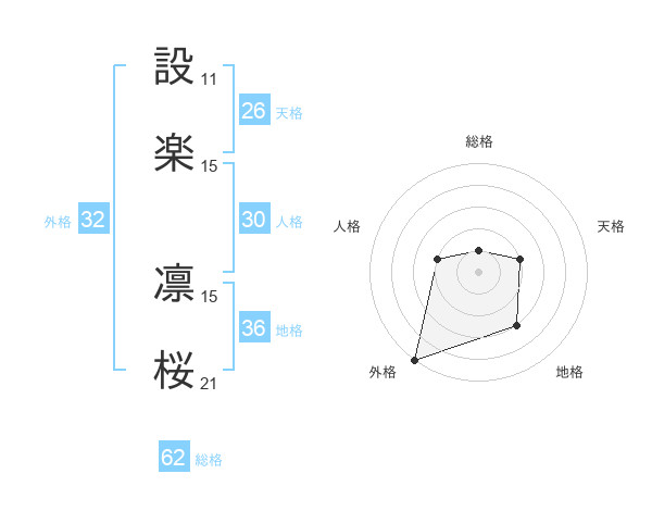 設楽 凛桜さんを姓名の画数から五運を鑑定