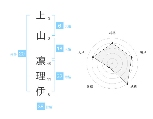 上山 凛理伊さんの総格は38画の4点!