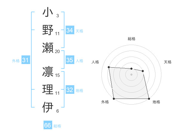 小野瀬 凛理伊さんを姓名の画数から五運を鑑定