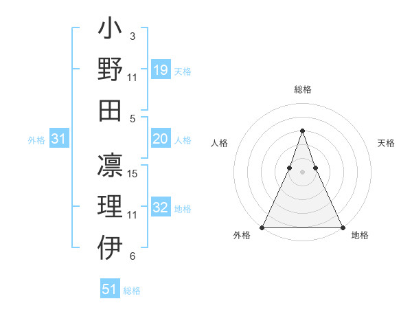 小野田 凛理伊さんを姓名の画数から五運を鑑定