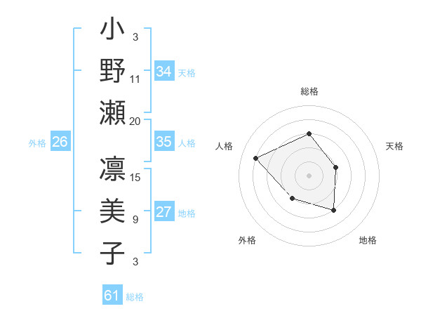 小野瀬 凛美子さんを姓名の画数から五運を鑑定