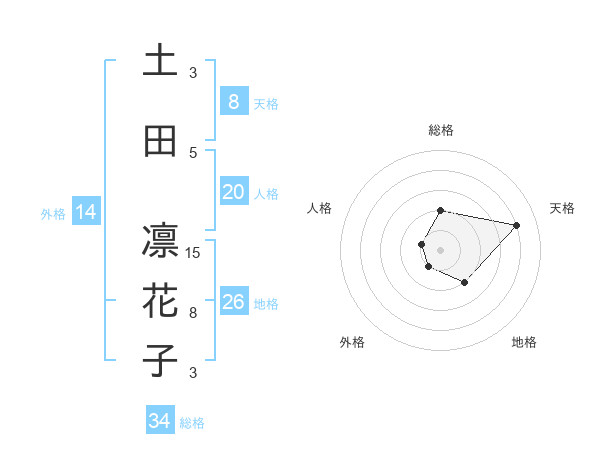 土田 凛花子さんを姓名の画数から五運を鑑定